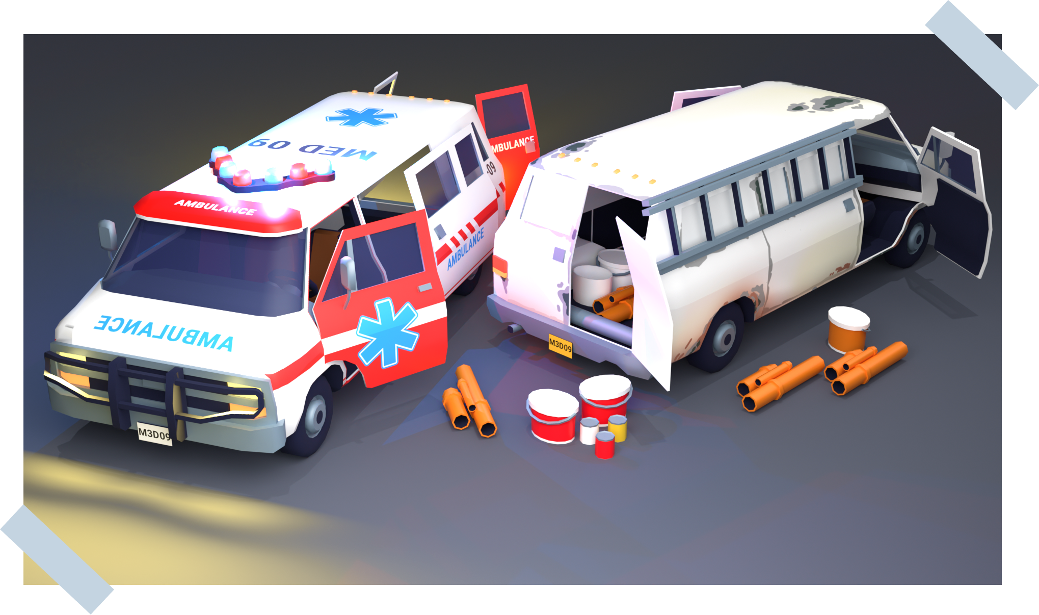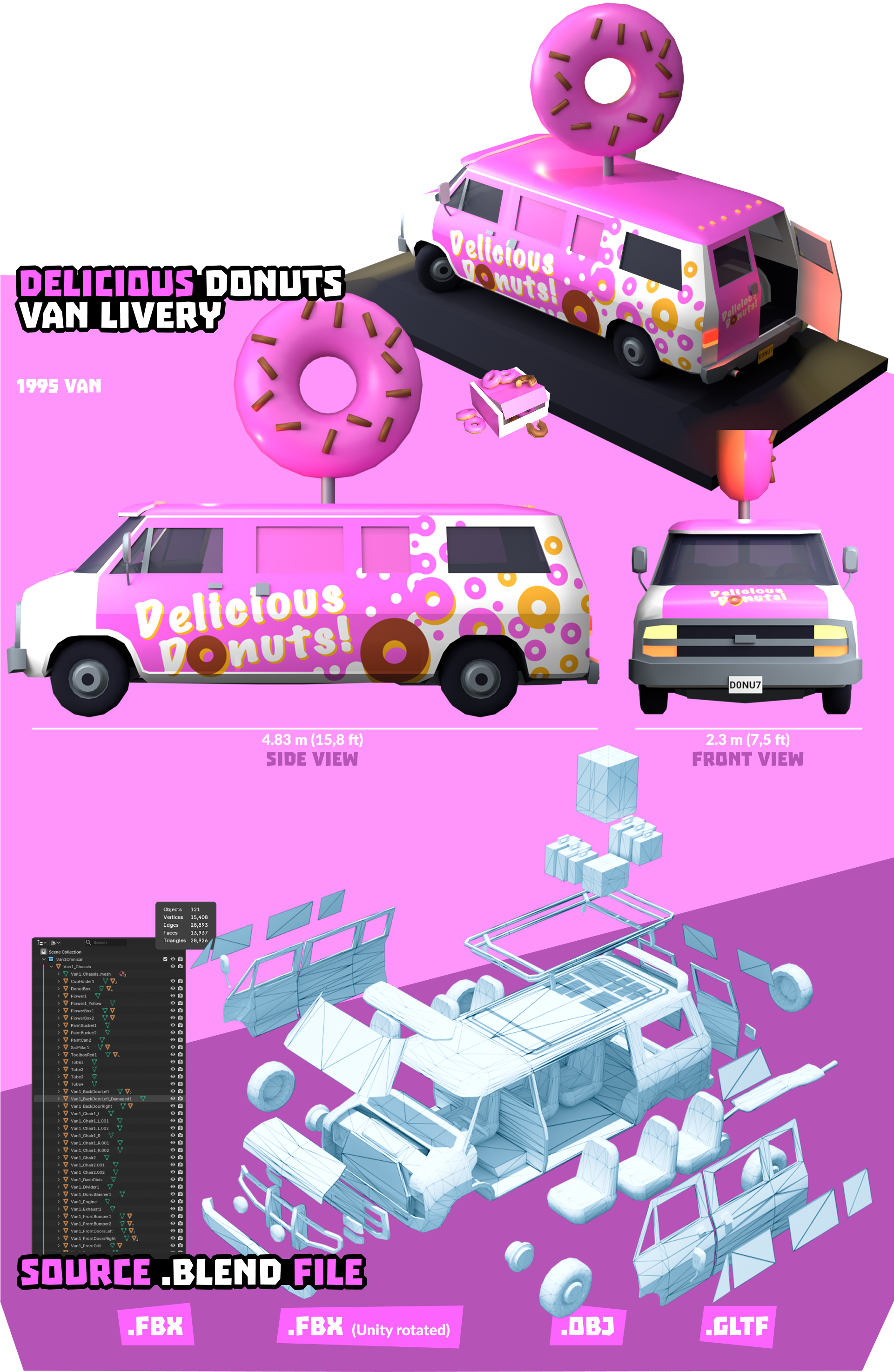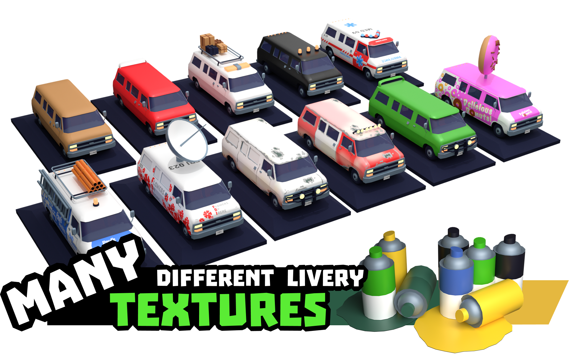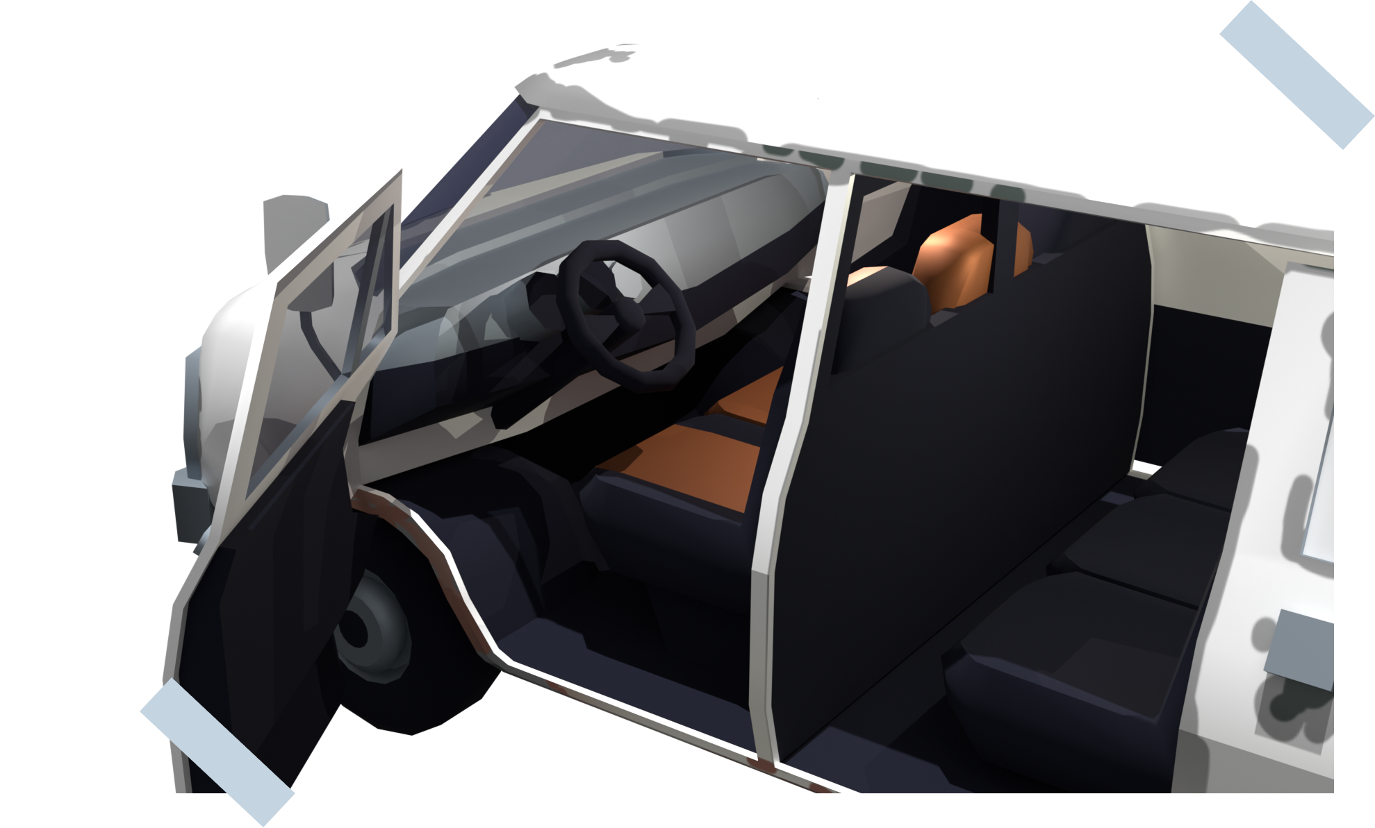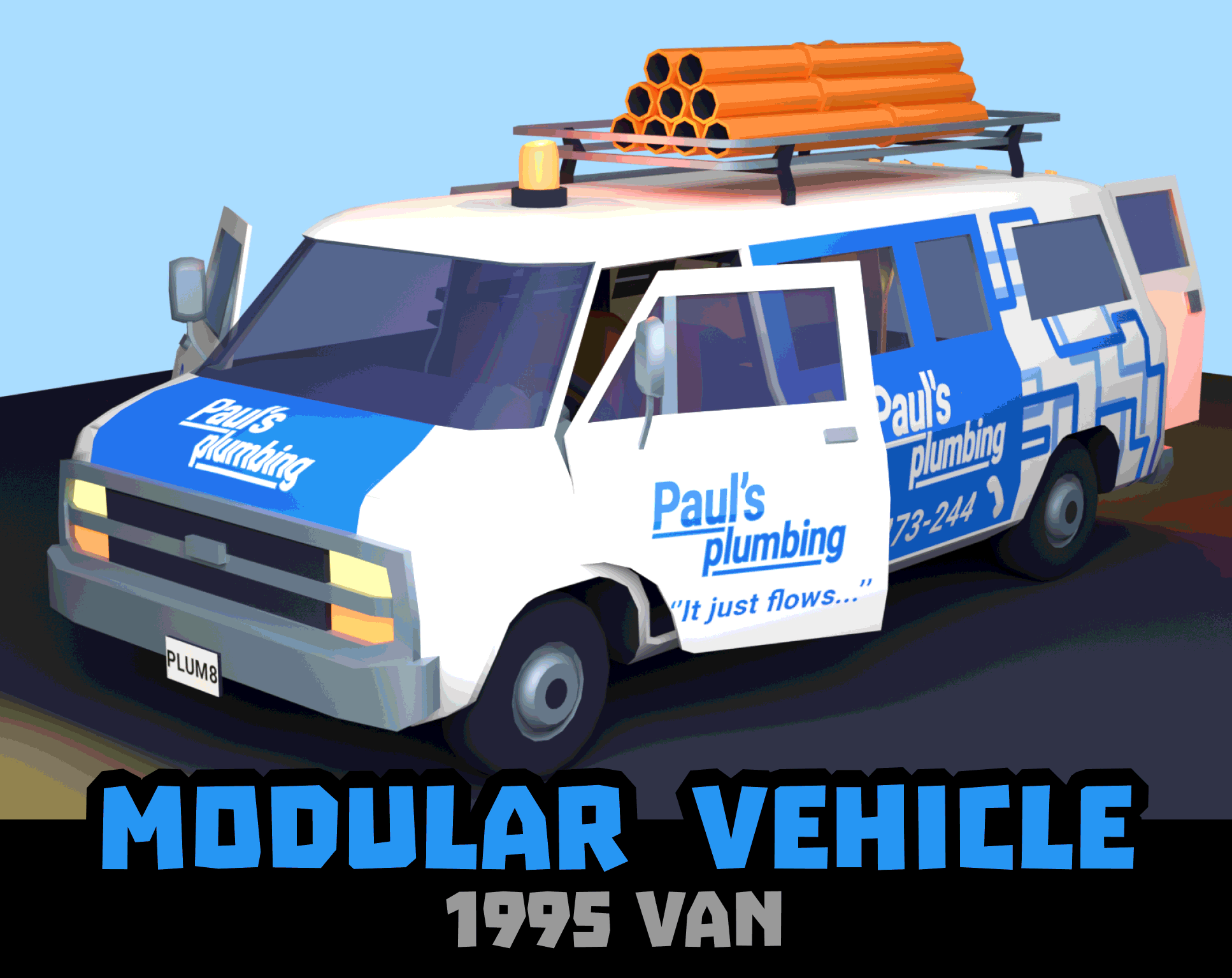 Low-Poly 1995 van 3D car model. Stylized low-poly cartoony aesthetic.
