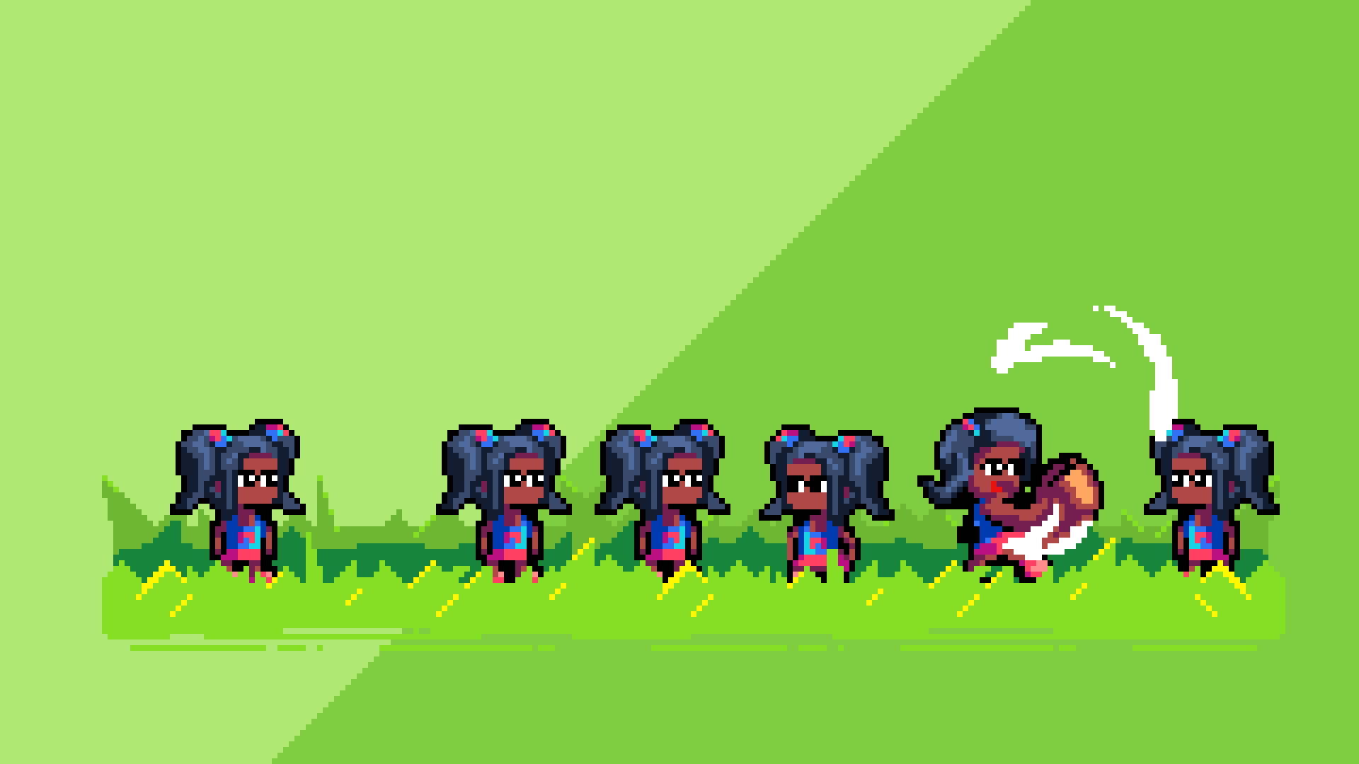 - Ayo - black haird, ponytails, pink accessories