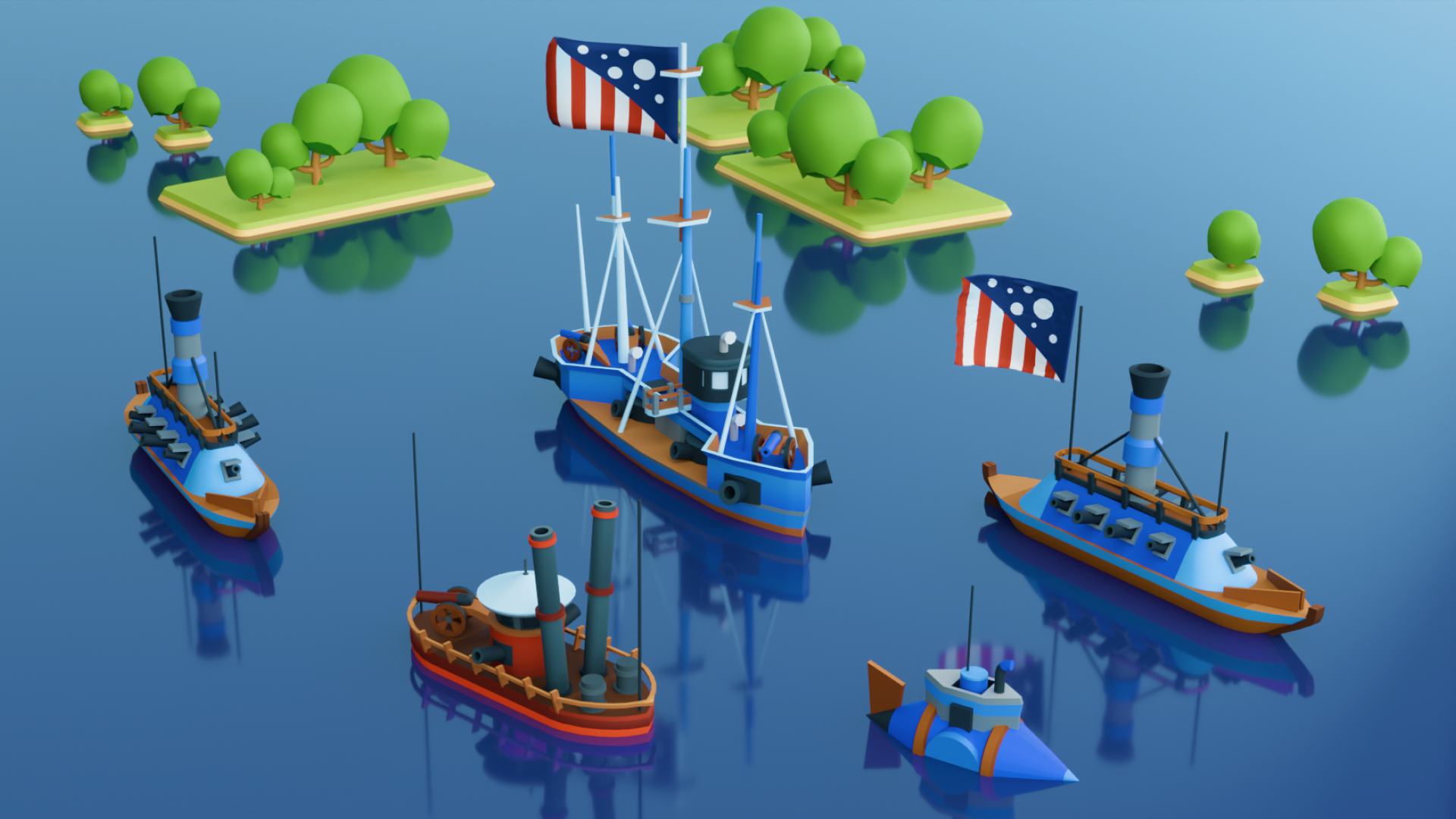 - 41 low poly ship and sea environment models and variants tailored for Battleship-inspired game (but also all other ranges of games).